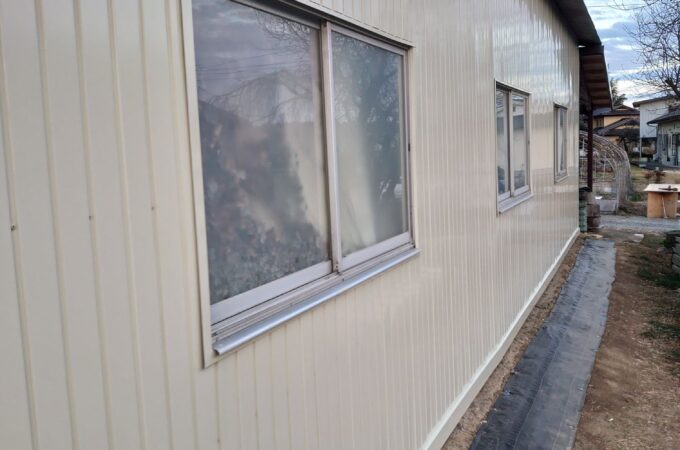 波トタンとポリカーボネットの壁を張り替えました。 お客様からの要望で窓は撤去しました。 壁材は角波サイディングと言う種類です。 新...